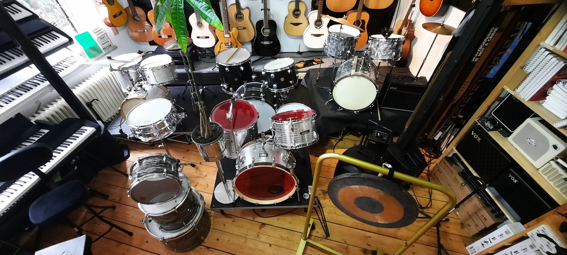 - Zubehör- Noten- Unterricht- Reparaturen- Service- Vintage Drums- Custom Drums